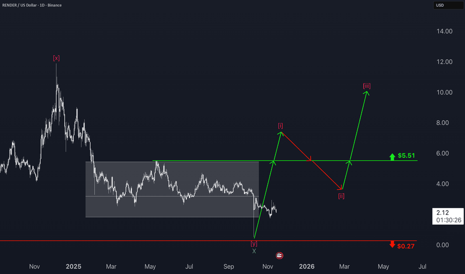 Render , black FridayGetting a chance to buy Render in -80% is truly a gift . With all the hype around AI and all the good news coming from Render it’ll blow when time comes , right now climbing in a long term channel hitting the floor and indications of massive move ahead , I’m in and waiting.